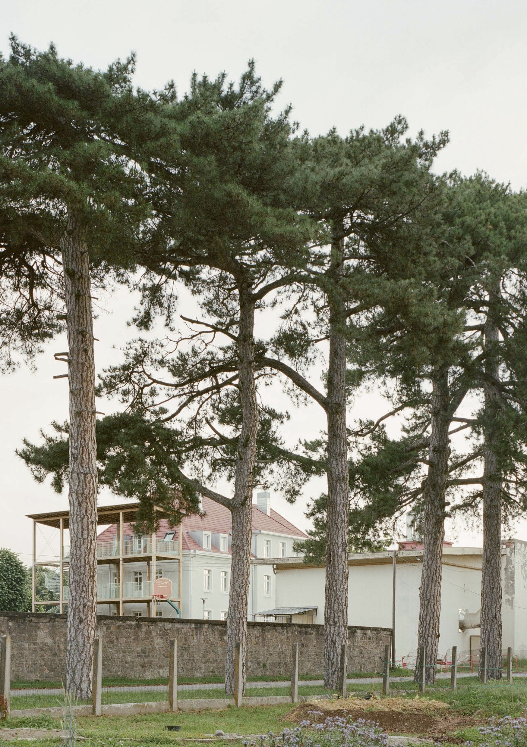 Accolée au pignon sud du bâtiment, une construction en bois, qui s’appuie sur le gabarit du Don Bosco, permet de doter chaque niveau d’une terrasse ensoleillée. Ces espaces extérieurs, situés dans le prolongement des parcours de chaque groupe de vie, favorisent l’ouverture sur l’extérieur.